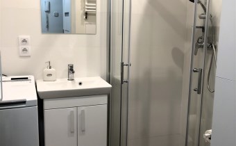W Kuchni szafki stojące i wiszące, piekarnik, kuchenka gazowa, lodówka. Salon: kanapa, stolik kawowy, stolik RTV, stół, krzesła. W sypialni łóżko, komoda, szafa. W przedpokoju szafa, garderoba. Łazienka w glazurze nowego typu wyposażona w kabinę prysznicową.